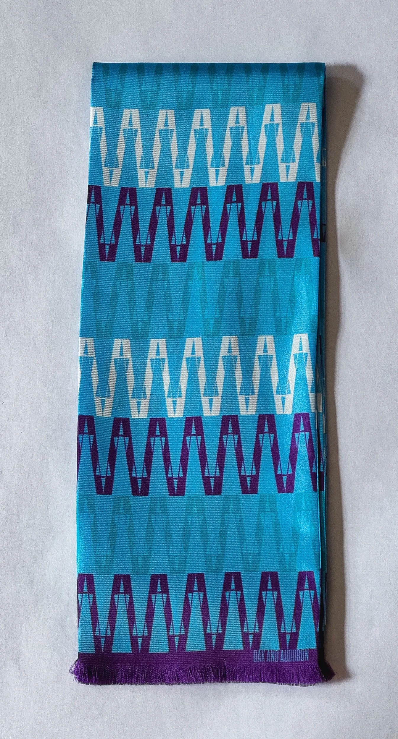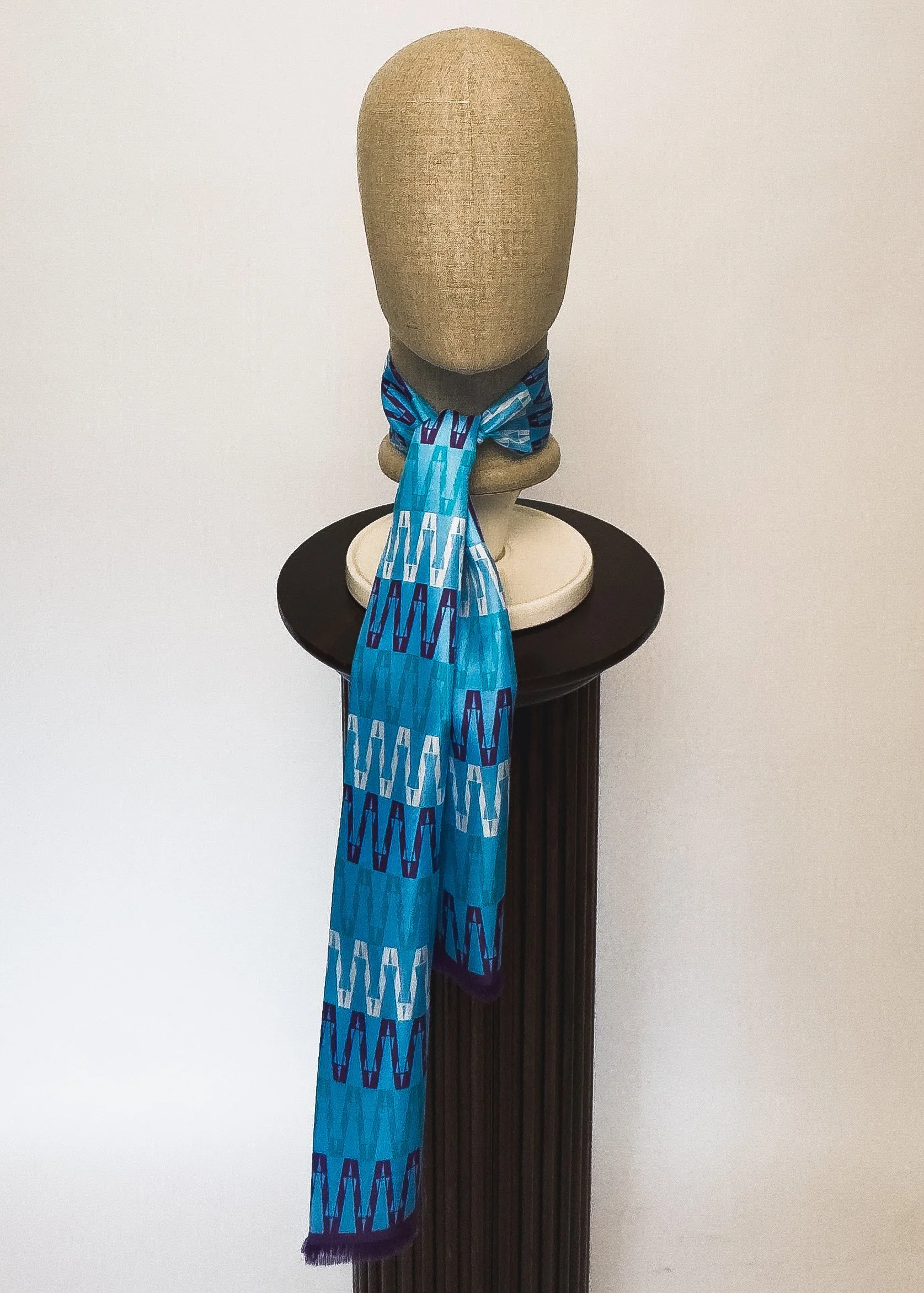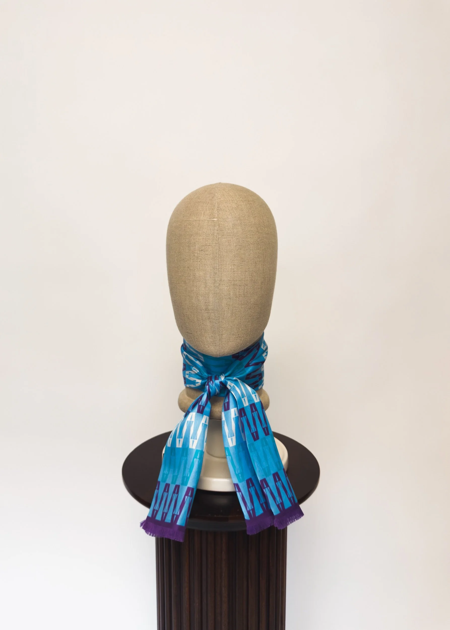 In featherweight 15 oz pure silk this handmade scarf is a unisex piece that can be enjoyed by anyone. In baby blue, royal purple, teal, and white.