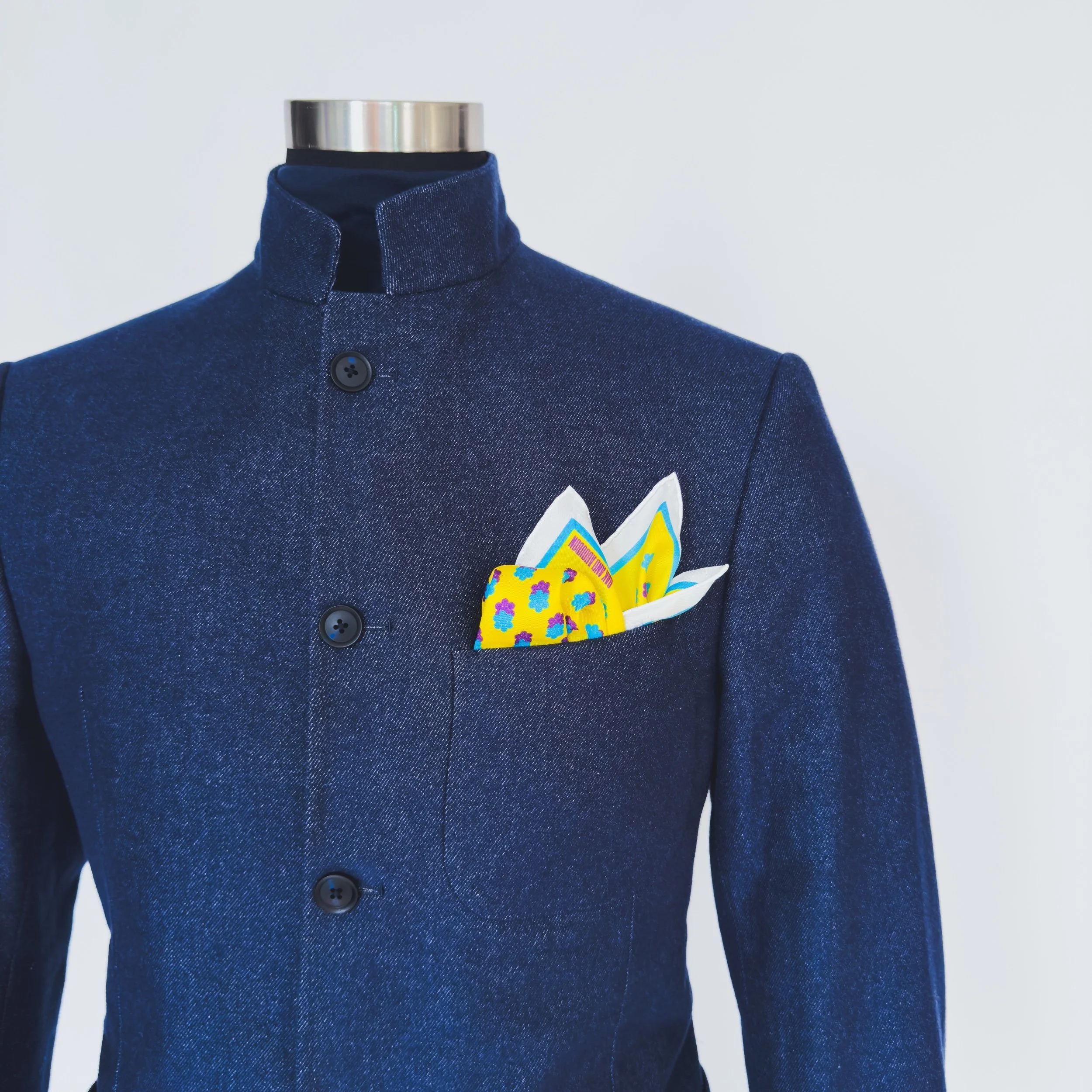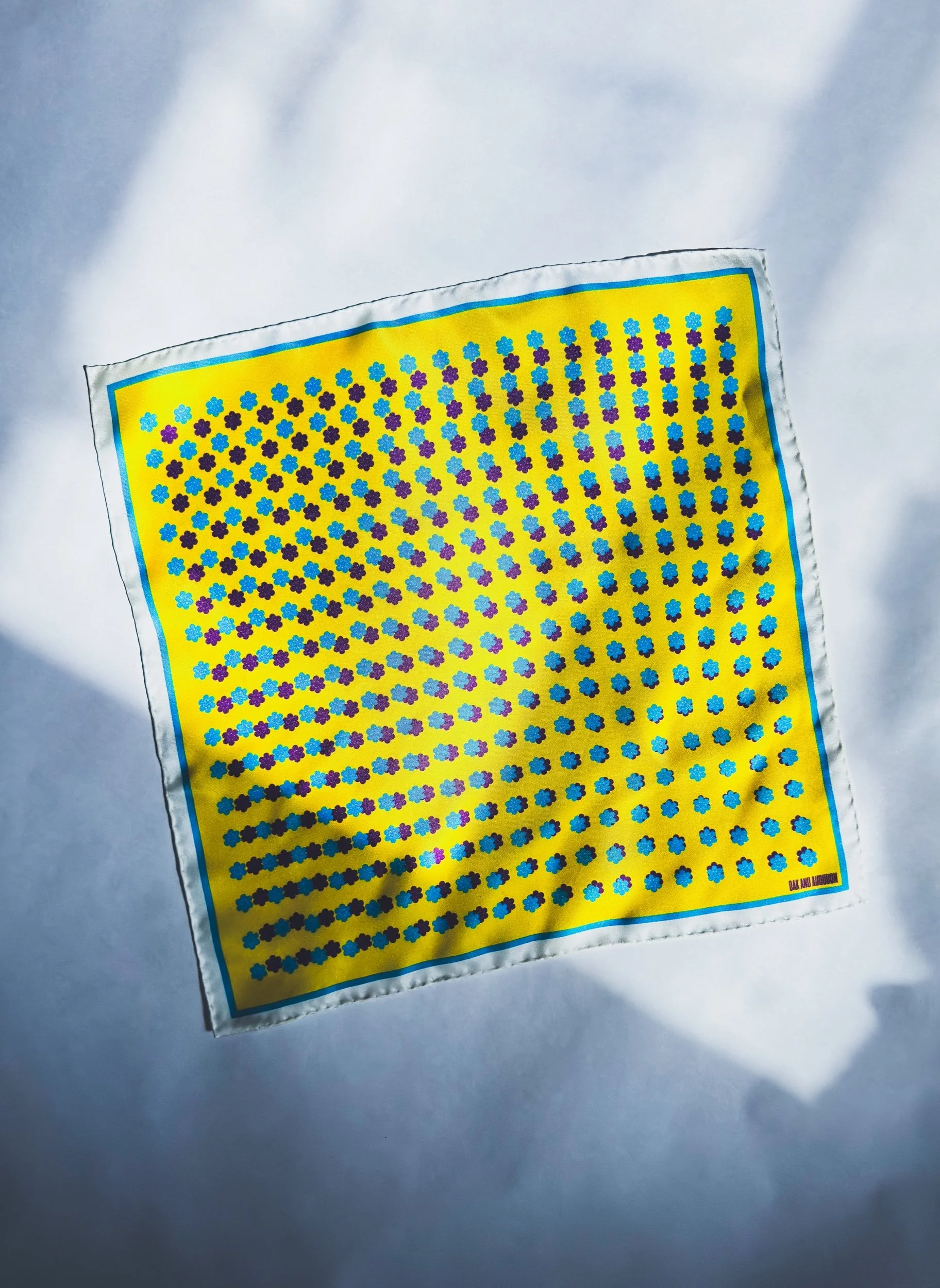 This pocket square uses our iconic Cluster Dot to explore pattern, tone, color, with a bit of whimsy.