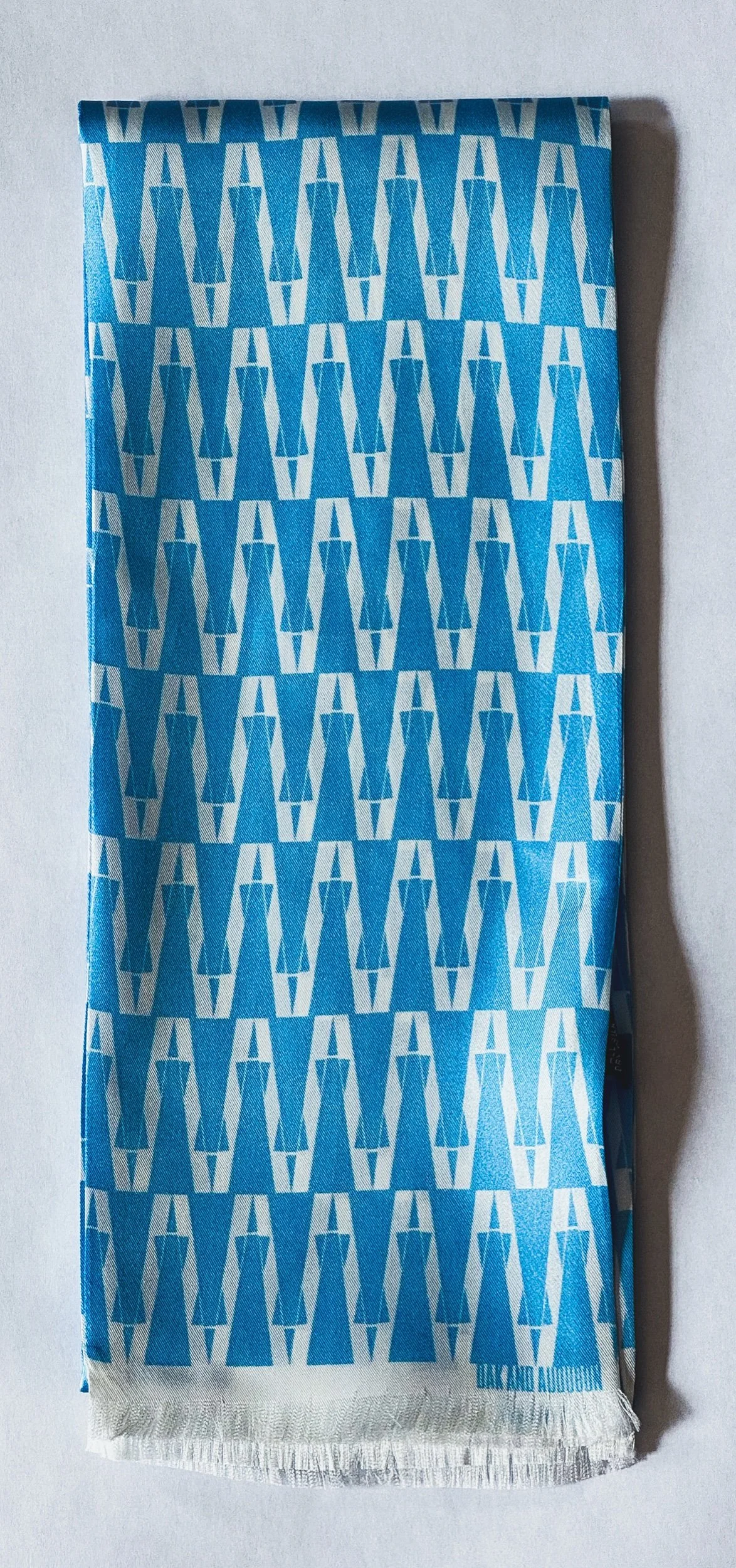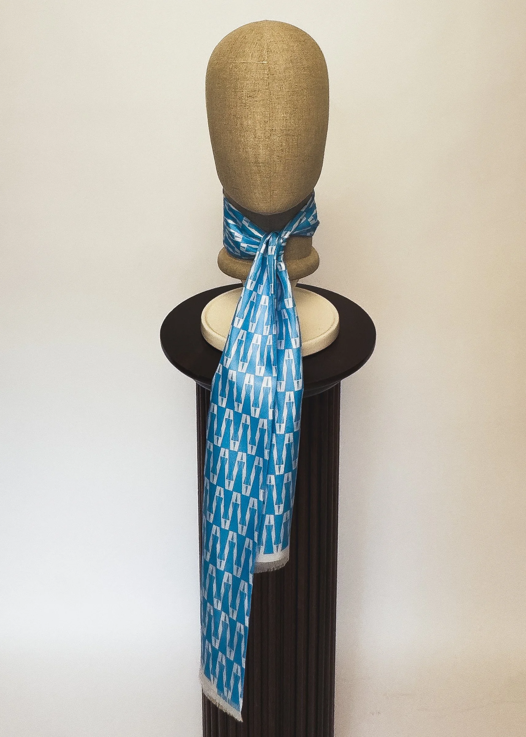 In featherweight 15 oz pure silk this handmade scarf is a unisex piece that can be enjoyed by anyone. In baby blue and white.