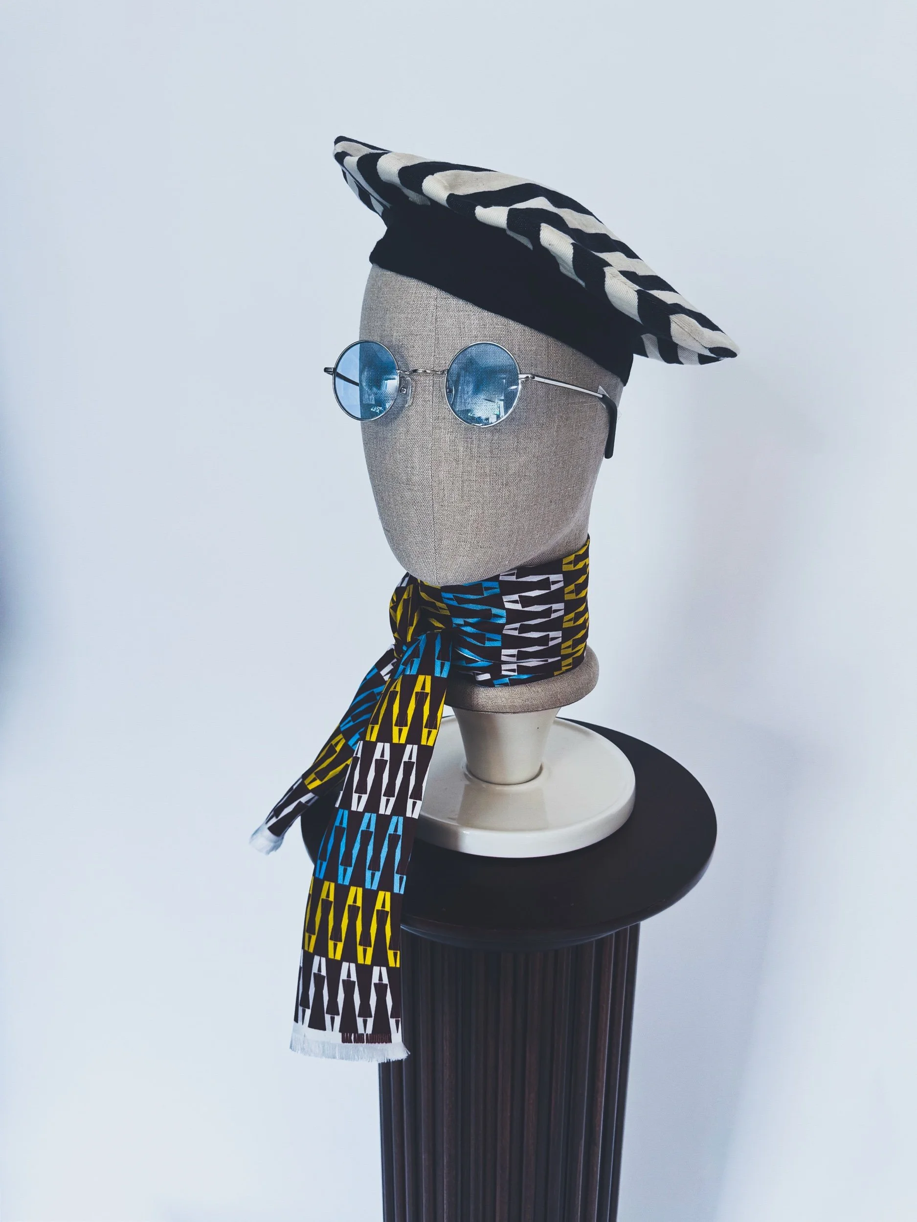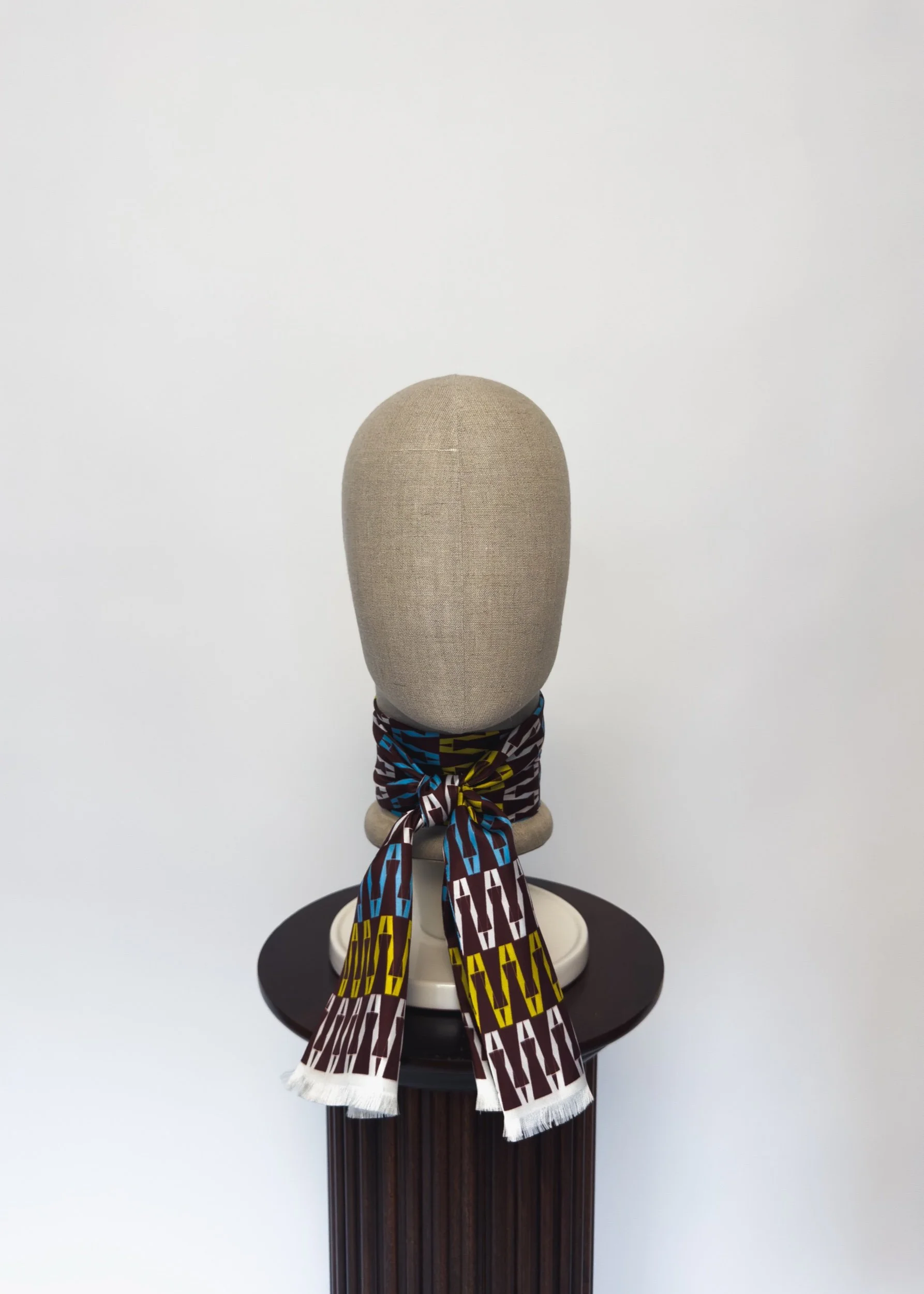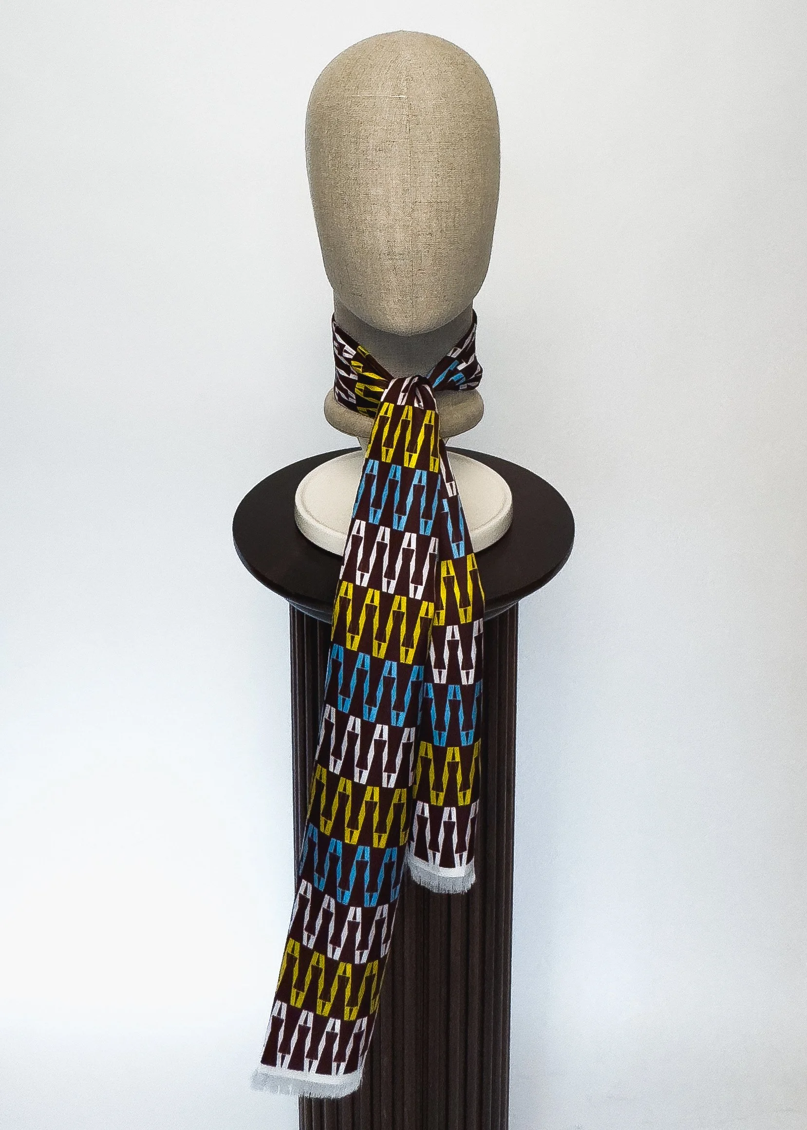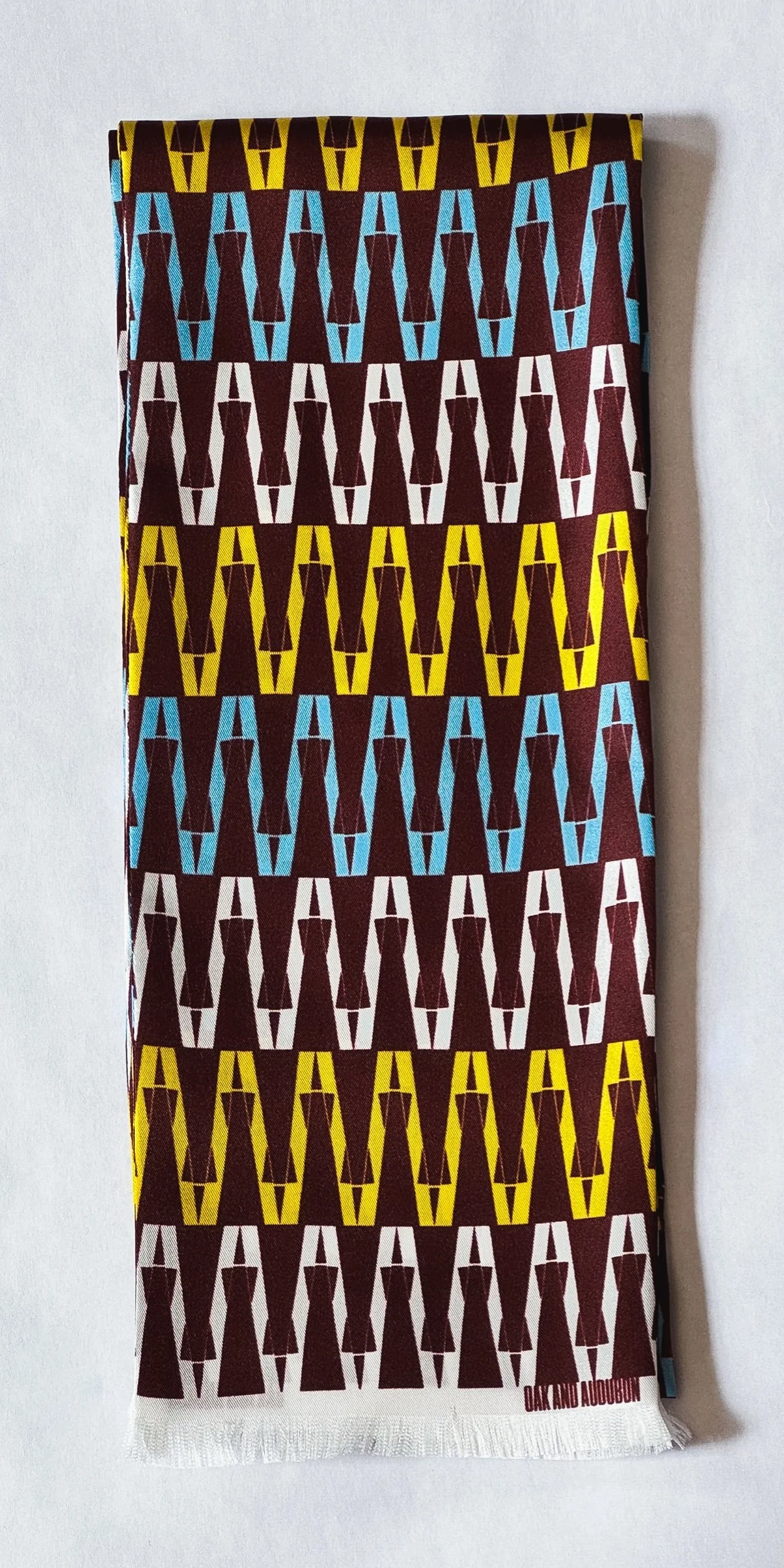 In featherweight 15 oz pure silk this handmade scarf is a unisex piece that can be enjoyed by anyone. In wine, yellow, turquoise and white.