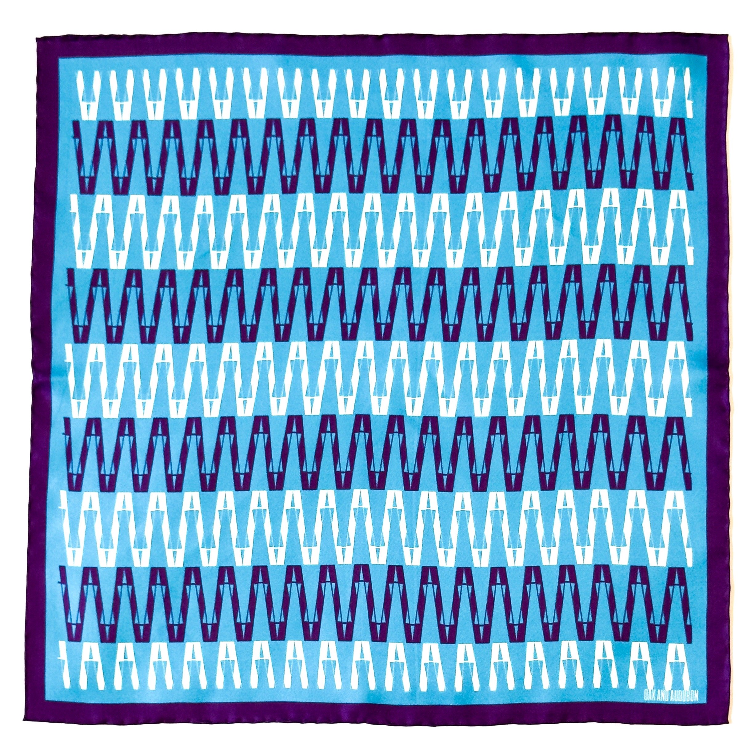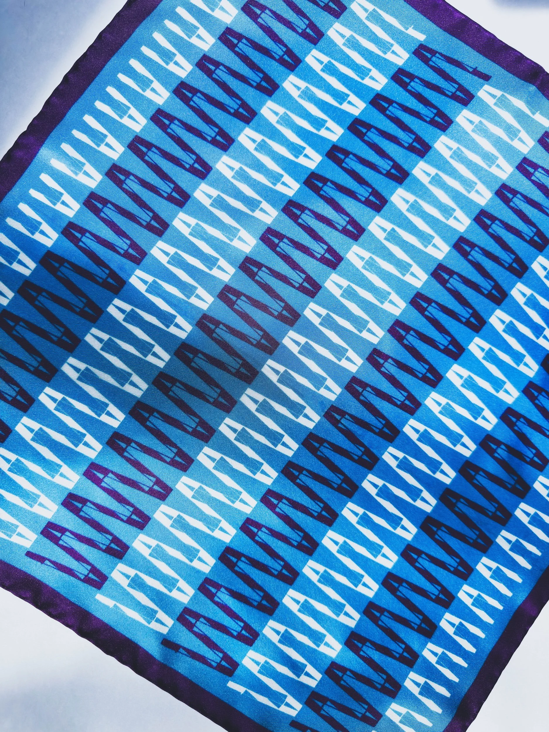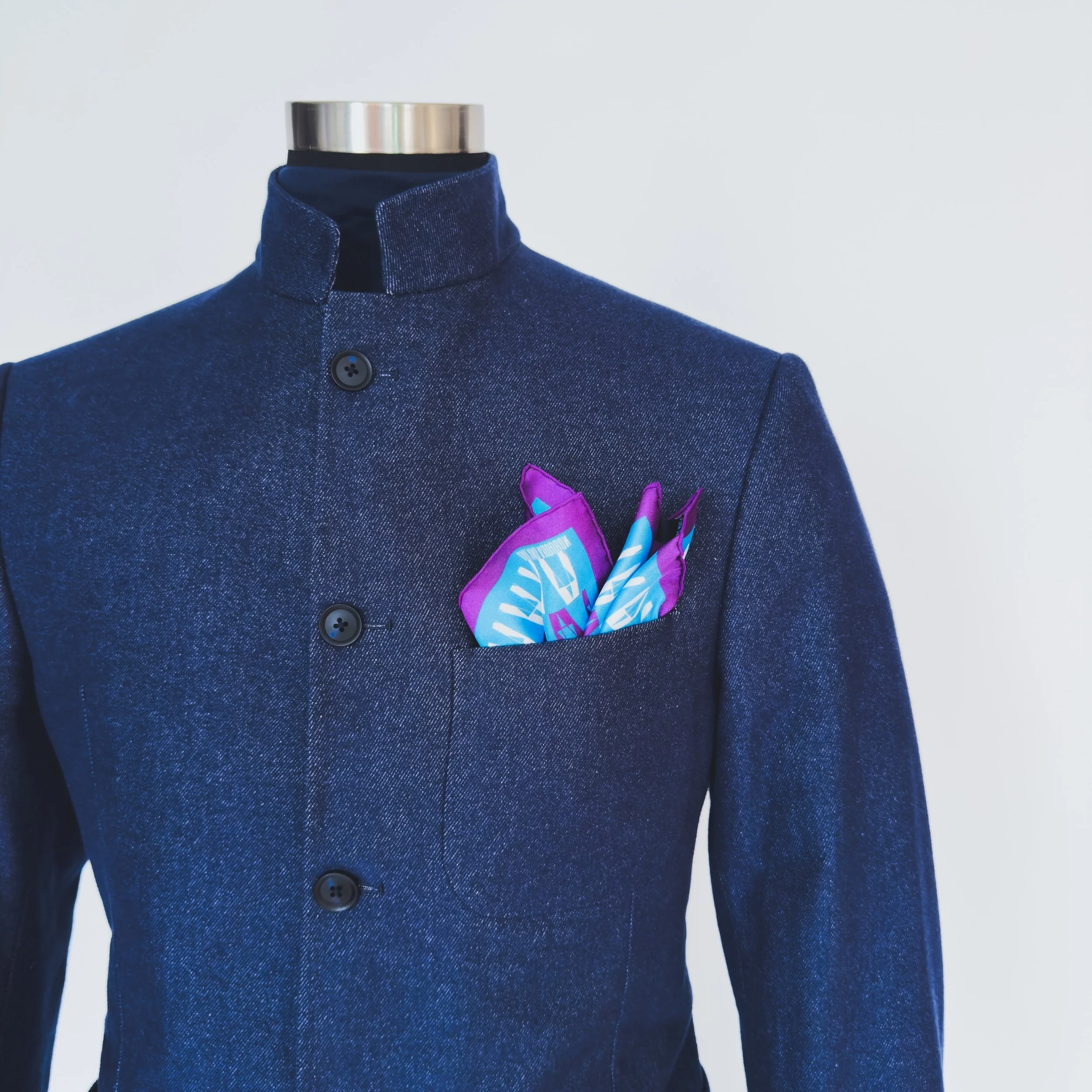 In featherweight 15 oz pure silk this handmade pocket square is a perfect addition to your wardrobe. In turquoise blue, royal purple, & white.