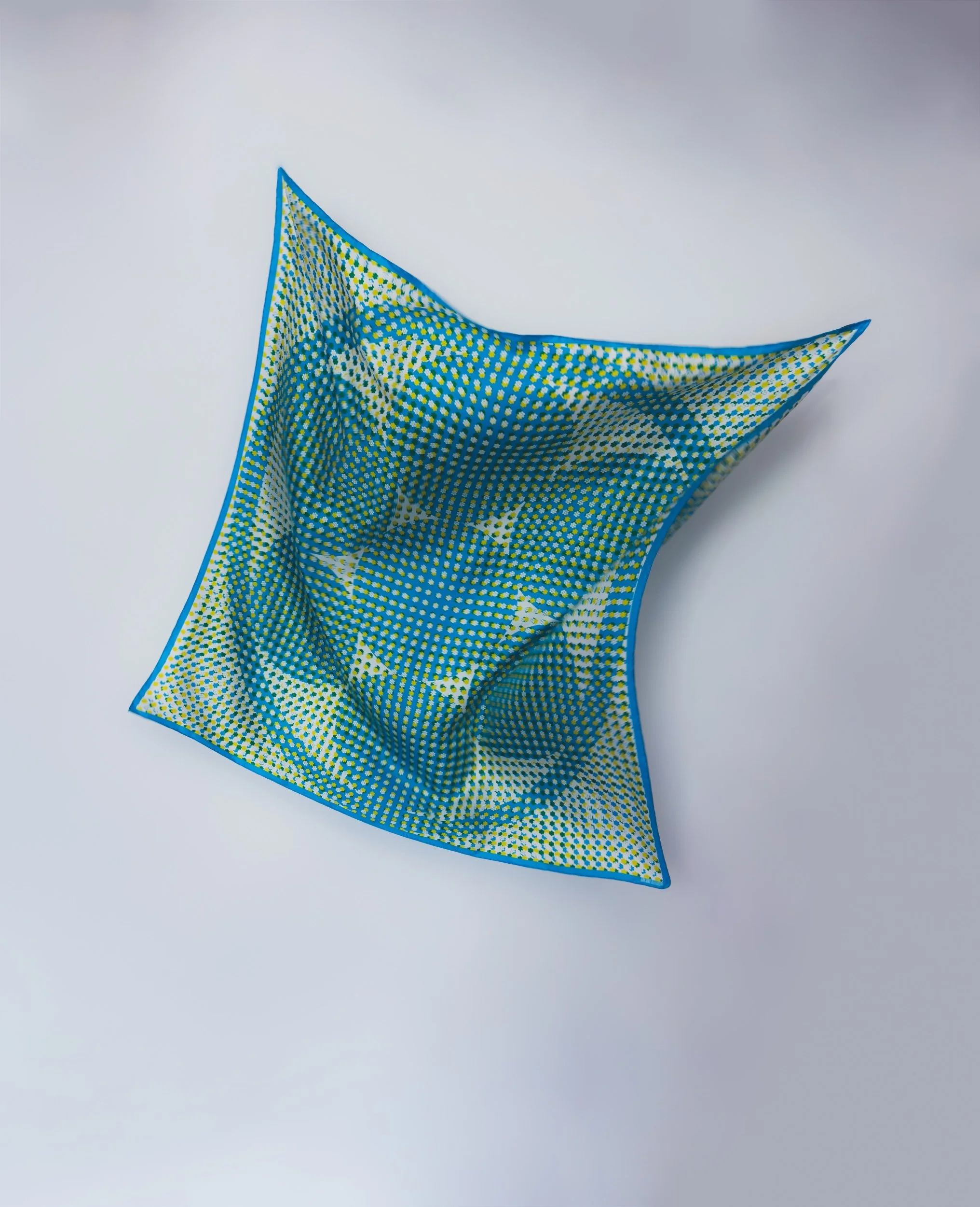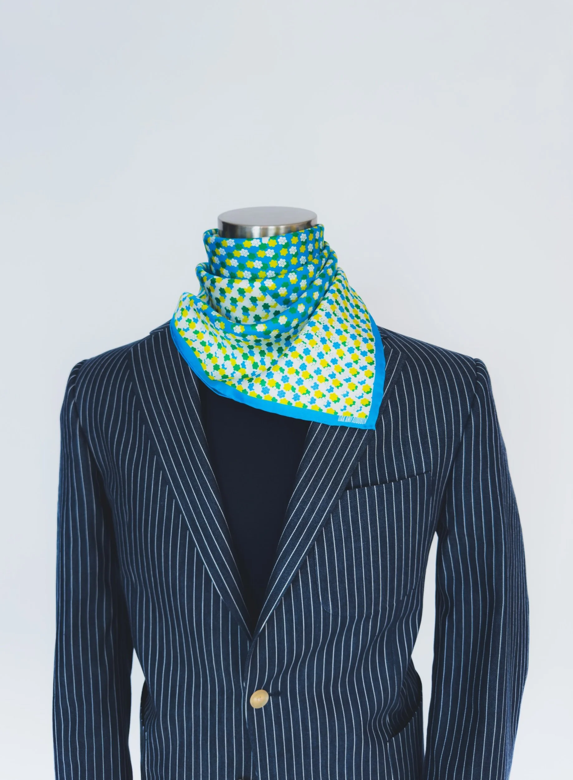 Our iconic Cluster Dot is used to explore pattern, tone, color, with a bit of whimsy in this scarf. Acting as almost a “magic eye” you are treated to a visual texture that exquisitely contrasts against the luxurious silk of the scarf.