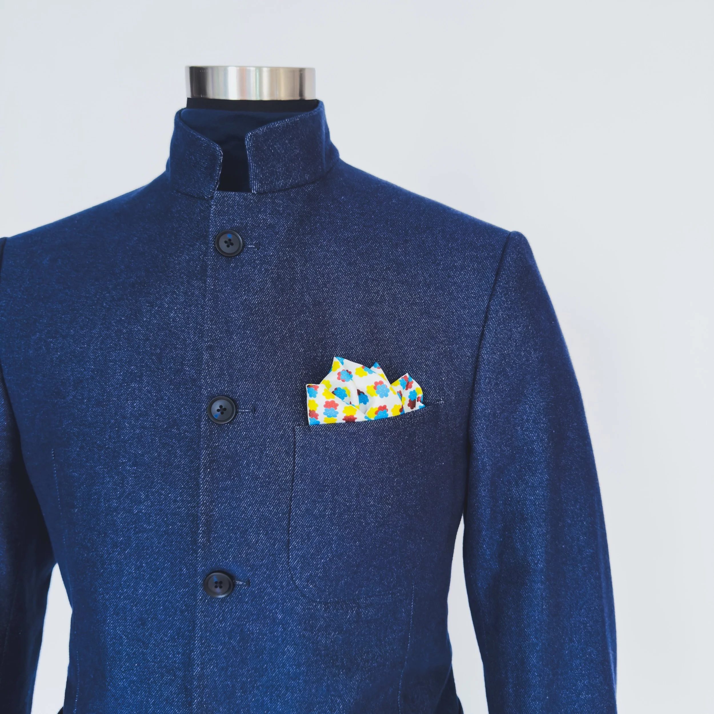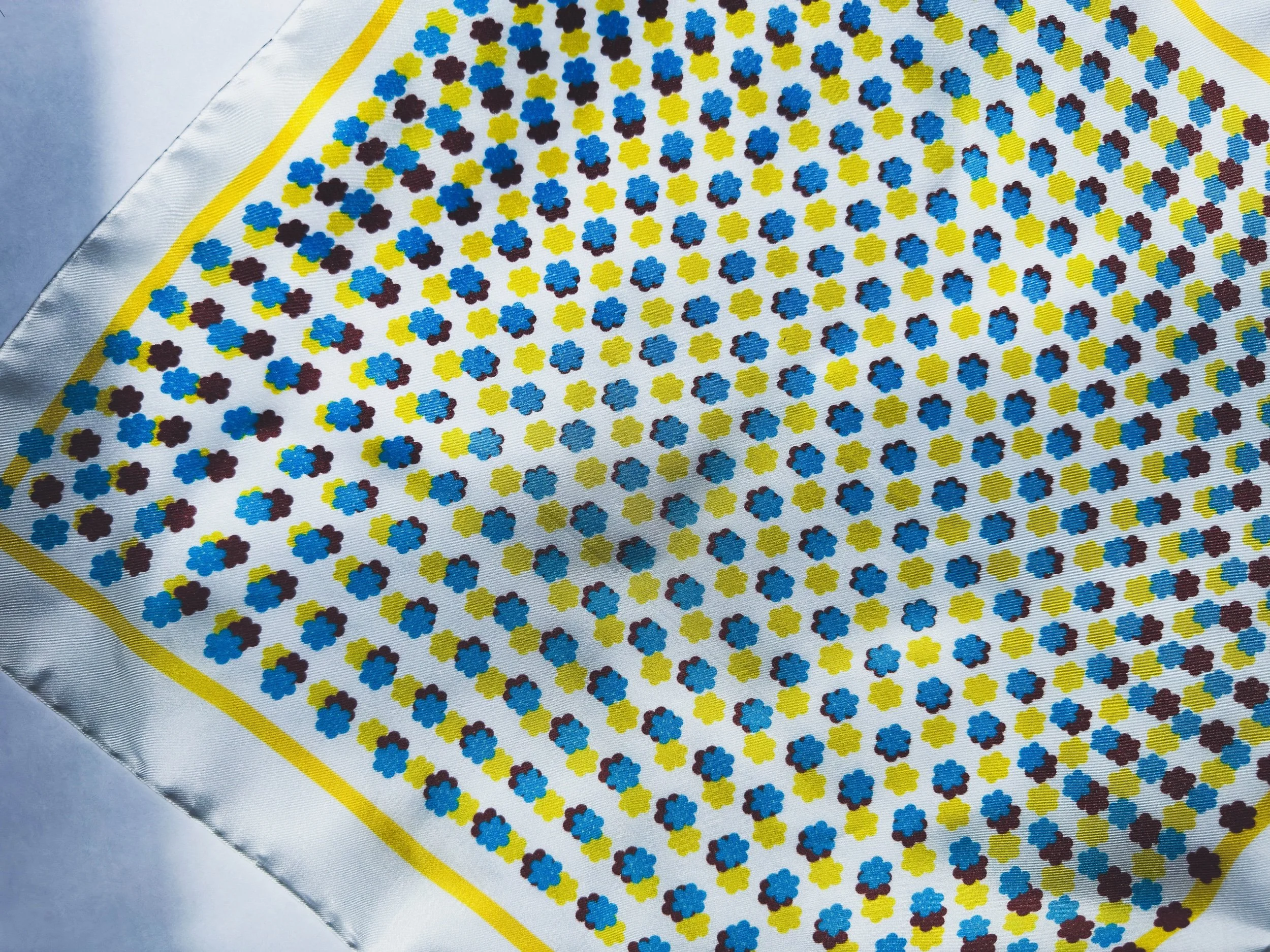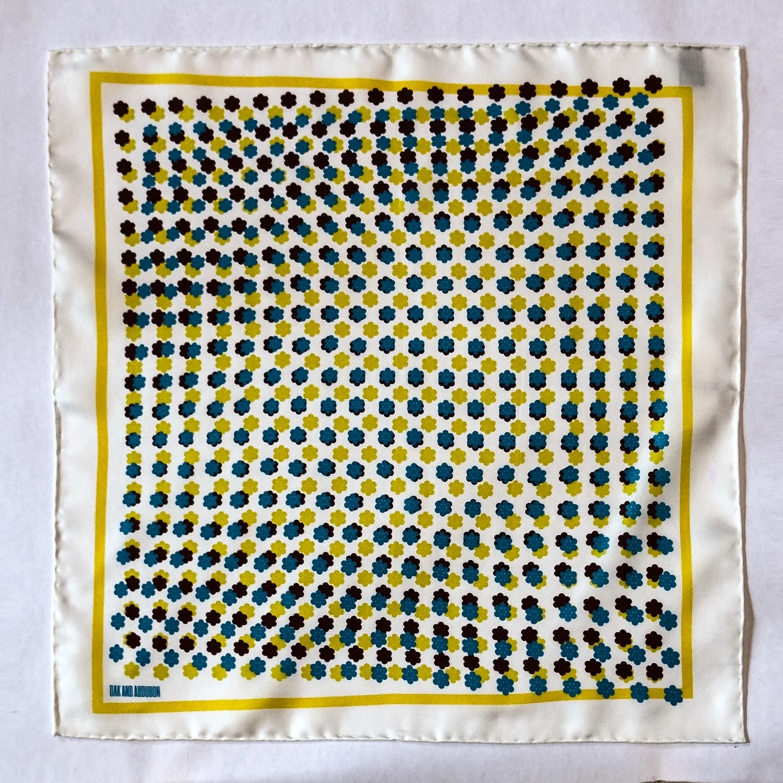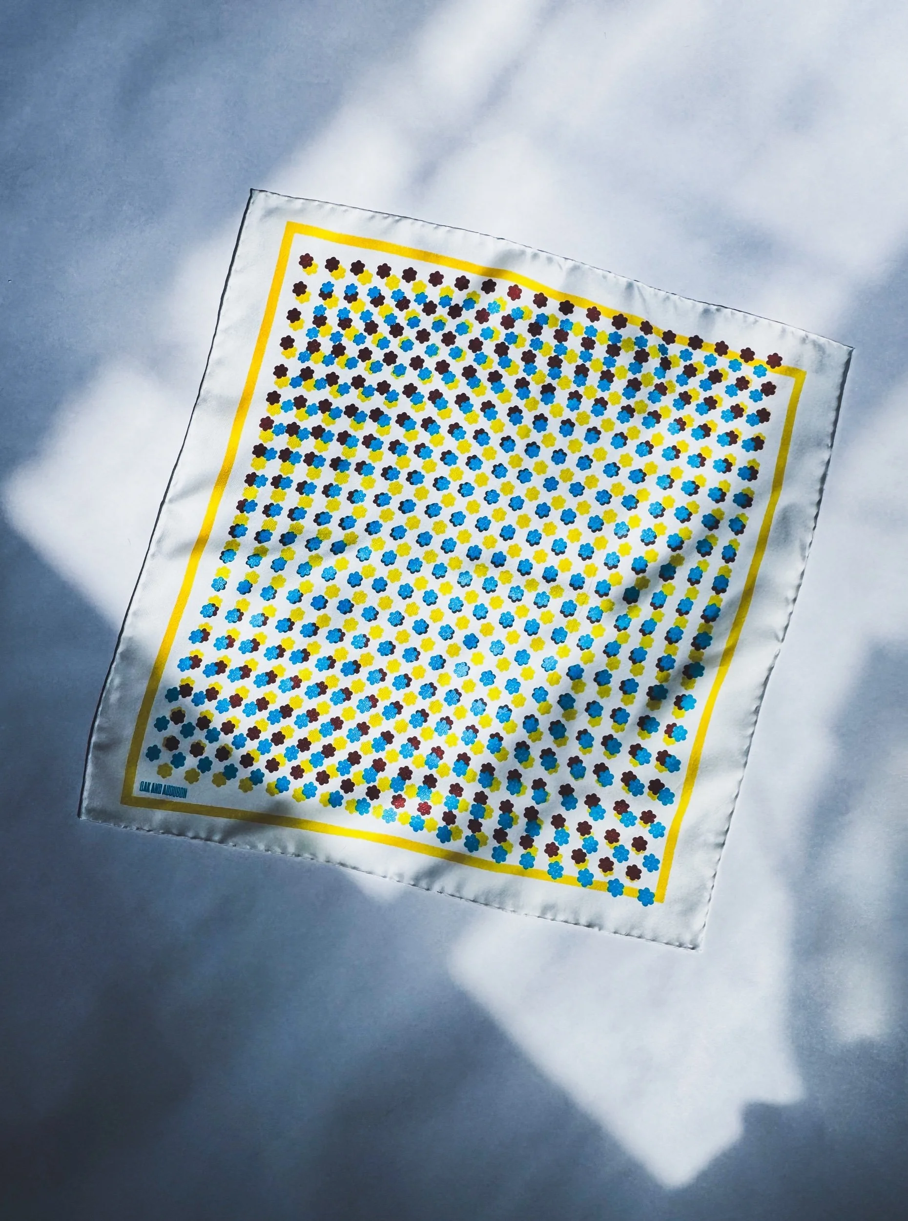 This pocket square uses our iconic Cluster Dot to explore pattern, tone, color, with a bit of whimsy.
