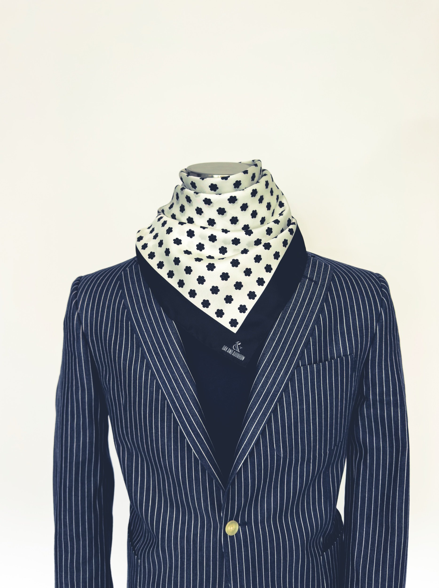 At Oak & Audubon, we dont do anything “basic.” The Cluster Dot is our take on the classic menswear staple- the polka dot. I am delighted to introduce the Cluster Dot square scarf this season to the assortment. A bold but classic statement piece of neckwear, or a perfect accessory for a handbag