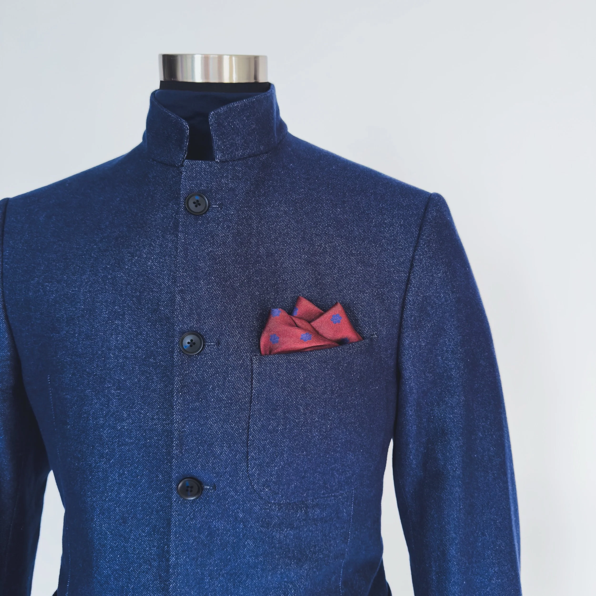 One day while designing, I was in need of a shape to create some positive space in a pattern and I found the answer on my finger- my heirloom seven diamond cluster signet ring. For me it just clicked, and soon the seven-dot cluster found its way into almost every design and naturally as this classic polka dot pattern pocket square.