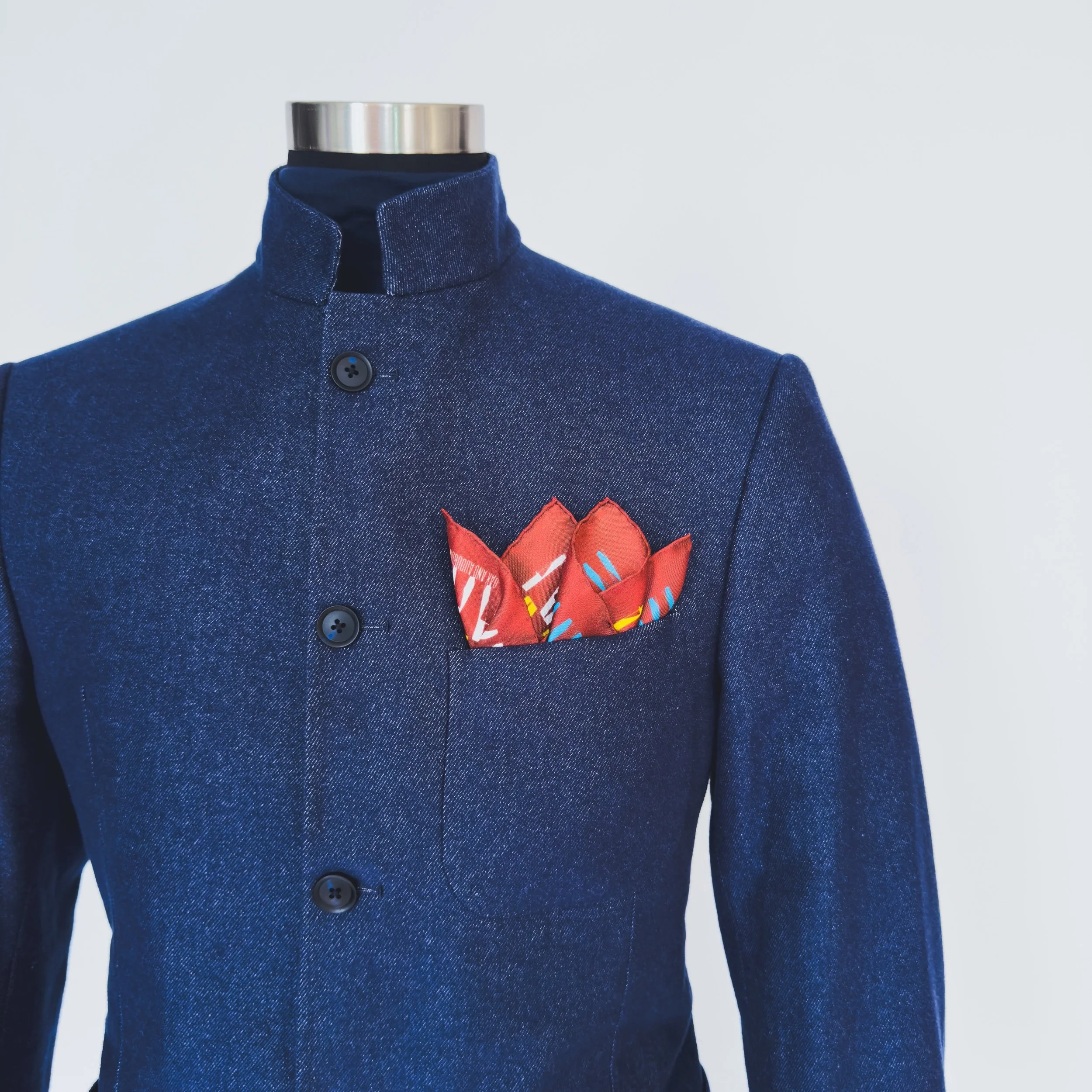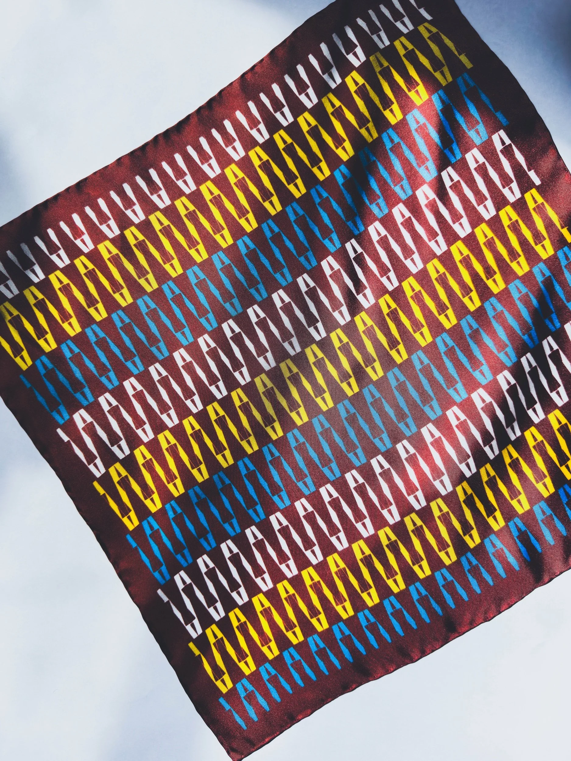In featherweight 15 oz pure silk this handmade pocket square is a perfect addition to your wardrobe. In wine, turquoise blue, sunset yellow, & white.